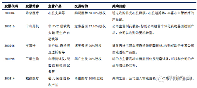 今年A股市场医疗器械行业的并购大致有三种类型。一是实力雄厚的医疗器械上市公司借助横向并购做大做强主业。拥有单一产品结构的医疗器械企业,在招标中不占优势。扩展业务领域和丰富产品线,就成为了很多医疗器械企业并购的最主要目的。比较典型的代表公司是:乐普医疗、宝莱特、戴维医疗等。