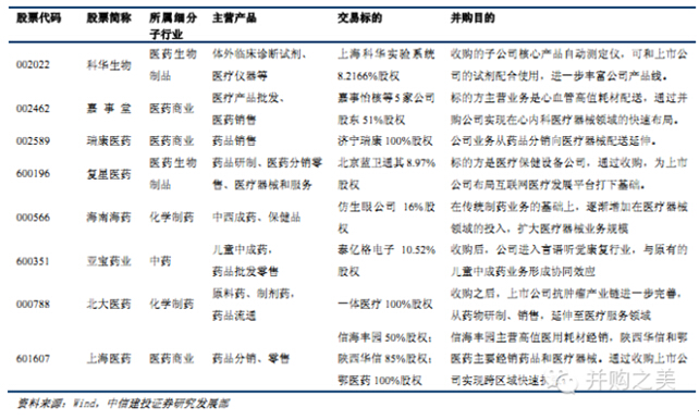 图1 医疗器械上市公司横向并购案例