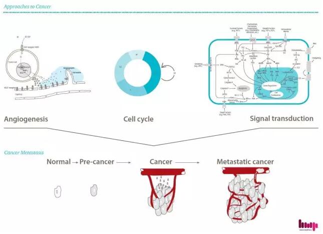 在癌症晚期,肿瘤分泌大量血管内皮生长因子(VEGF),这是一种在肿瘤周围刺激形成过多血管系统的蛋白质配体,以便向肿瘤部位提供更多的血液流动、氧气和营养物。VEGF和VEGFR在肿瘤相关的血管生成中起关键作用。 抑制VEGF/VEGFR信号通路的代表了阻断肿瘤生长和侵入所必需的新血管发展的重要治疗策略之一。