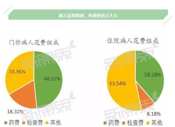 那么看病主要有哪些花销呢,首先是药费,虽然说“医药分家”改革在中国进行了好多年了,但是去医院看病,买药的花销一直是个大头,从2014年的统计结果来看,去看门诊将近一半的钱要花在买药上;住院病人的药费也将近四成;门诊病人要进行常规的检查,检查费也占的将近两成,住院病人的检查项目比较多,绝对花费比较大,但是由于住院病人其他费用较多,因此检查费在住院费里占据不足1成。而其他费用在住院花费中占据一大半,包括护理费、床位费、治疗费等等。