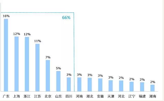 《指导意见》出台时,已有16个省启动了试点,到2015年底,全国已经有28个省开展了分级诊疗试点。各省分级诊疗推进的差距非常大; 绝大多数省份才刚刚开始尝试推行分级诊疗; 上海市是分级诊疗推行最早最为成熟的地区 ;作为医改试点大省,江苏省也是分级诊疗推行较早且力度较深的省。 江苏省从强基层入手,一方面着力于基层人才队伍建设,另一方面通过分级支援,结对帮扶等制度,提高基层医疗服务能力,同时利用医保政策引导患者首诊在基层,并通过信息化手段搭建远程医疗和双向转诊的医疗平台。截止2014年12月,江苏社区卫生服务中心和站的数量为2,800个,年诊疗人次达到0.7亿人次。2015年江苏社区药品销售额为40亿人民币,近70%的销售集中在南京,苏州和无锡三个城市。