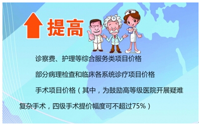 此次改革中,部分病理检查和手术项目等价格将提高,其中,为鼓励高等级医院开展疑难复杂手术,四级手术提价幅度达到75%,六岁以下儿童手术项目加收20%。