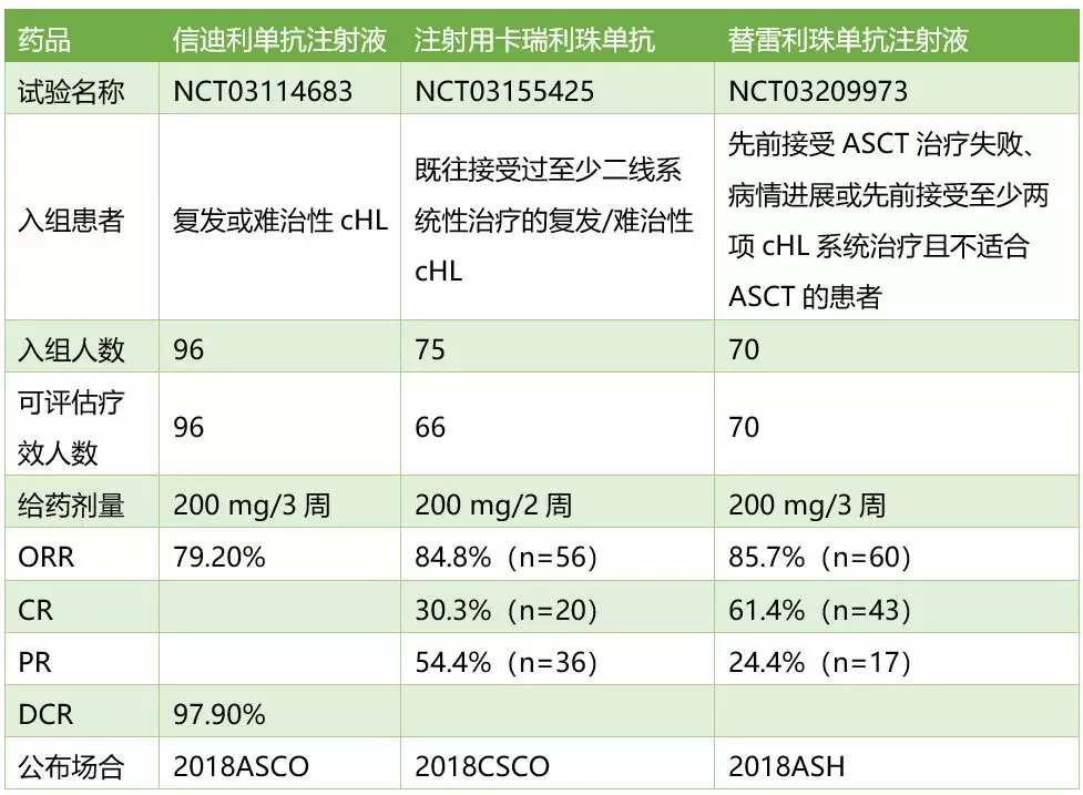 国产PD-1陆续获批上市后,是否会打价格战?这些问题目前下结论为时尚早。我们不妨先看一下信达、恒瑞、百济神州在首个申报上市适应症cHL上的临床数据。