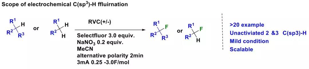 图1. 电化学C-H氟化反应