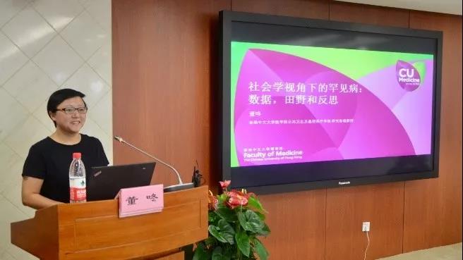 来自香港中文大学医学院赛马会公共卫生及基层医疗学院的董咚副教授首先为大家带来主题为“社会学视角下的罕见病数据、田野和反思”的学术报告。董咚自2014年起开始从事罕见病领域的社会学研究,采用社群参与式的研究路径(community participatory approach),结合定性与定量两类研究方法,进行了大量的田野观察和问卷调查,勾勒出我国受罕见病患者、家庭的受累现状,反映他们在疾病负担、认知差异、教育困境、社会流动等各方面所面临的困扰;她的研究结果再次证明罕见病不仅仅是一个医学问题,更是一个深刻的社会学问题,她的演讲为与会的医学专家打开了一个社会学视角。