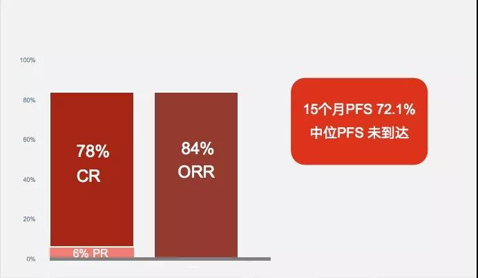 中位随访18.4个月,研究者评估的最佳ORR为84%,CR达到78%。较第一代BTK抑制剂提高疗效之外,泽布替尼的房颤、第二肿瘤、肿瘤溶解综合征的发生率均为0,再次证明了新一代BTK抑制剂有着更好的安全性。
