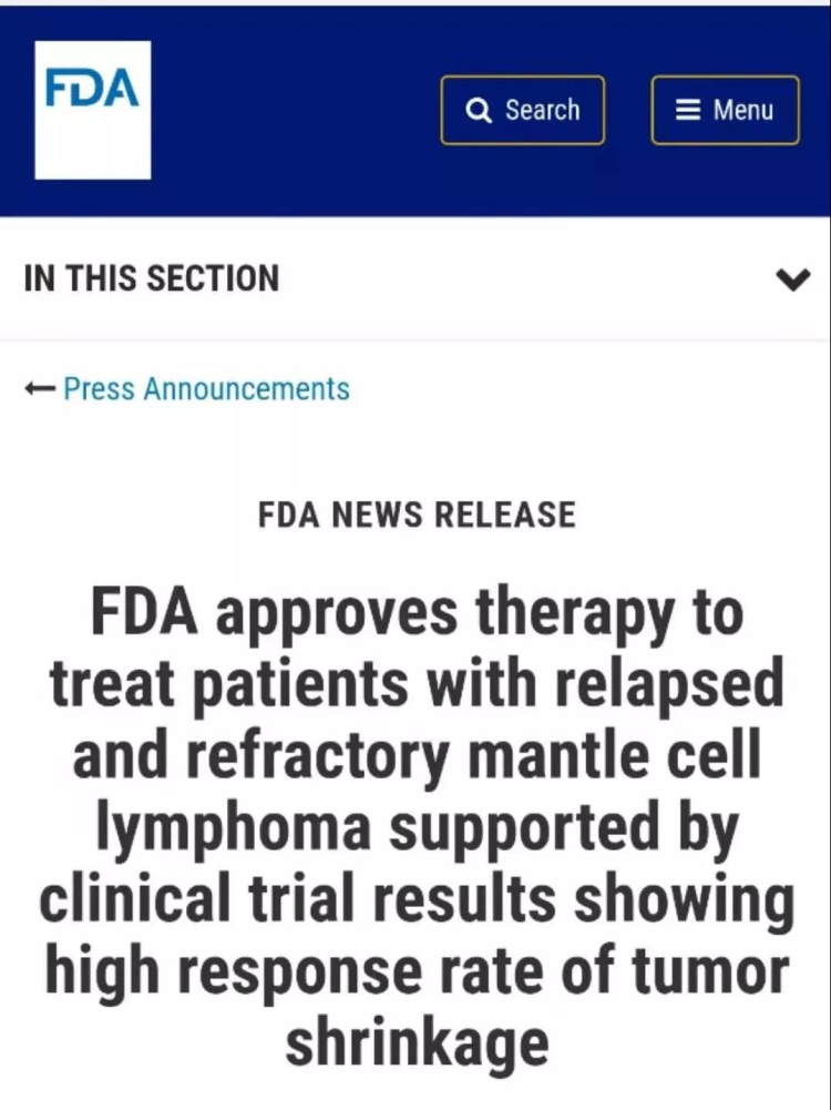 今天,泽布替尼于美国获批是中国创新药史上的突破,让我们一起期待它能在中国市场尽快获批,期待它造福更多国内外套淋患者,带来治疗的新希望!