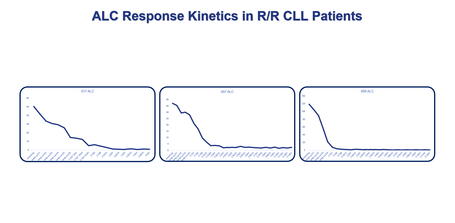 特别是在APG-2575的有效性方面,杨大俊博士强调了两点,一是在重要的有效性指标淋巴细胞绝对数(ALC)方面,3位高风险的入组患者在接受一个周期的治疗之后,ALC指标已经恢复正常的水平(见图1);二是在相较基线的淋巴结体积方面,可评估患者的变化非常明显 (见图2)。