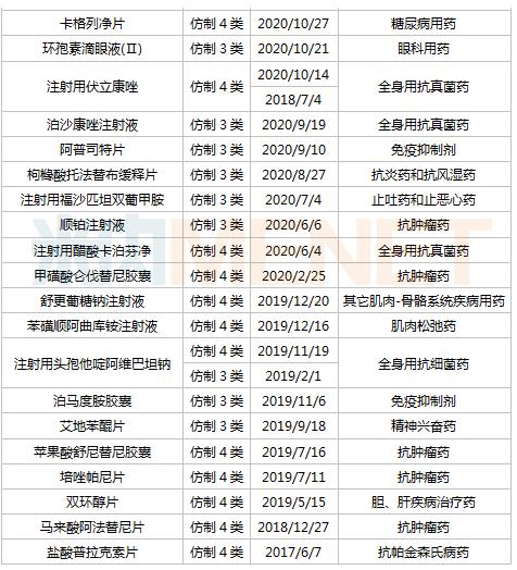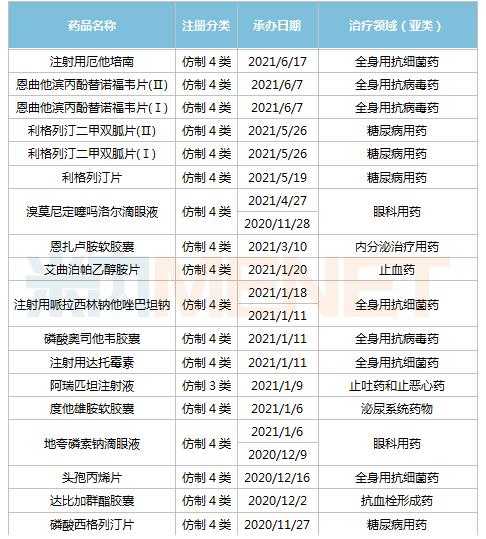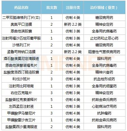 17个品种中,神经系统药物有5个,消化系统及代谢药、全身用抗感染药物各有3个。其中,齐鲁制药的甲磺酸雷沙吉兰片、二甲双胍维格列汀片为国内首仿,孟鲁司特钠口溶膜为国内首家,左西孟旦注射液、恩曲他滨胶囊、注射用比阿培南等3个品种为首家过评。