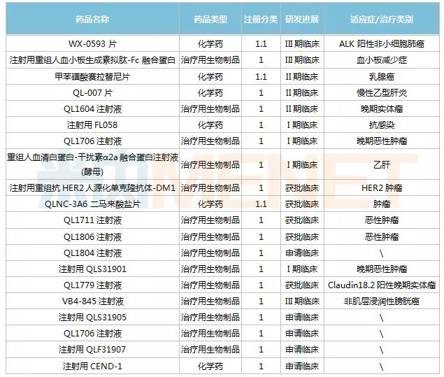 今年齐鲁制药有3款新药获批临床,包括QL1779注射液、VB4-845注射液及注射用QLS31901。其中,注射用QLS31901已启动I期临床,VB4-845注射液已启动III期临床,可见齐鲁制药对这两款新药的重视。