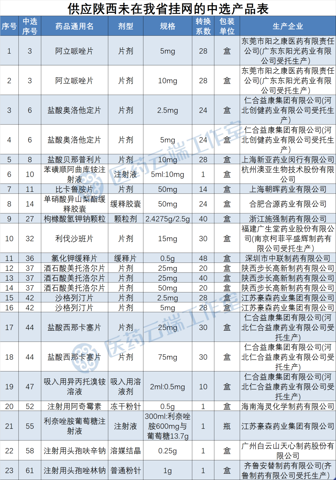 8月20日,陕西省发布《关于第五批国家组织药品集中采购中选供应品种补充信息的通知》,开展相关中选品种补充申报事宜。