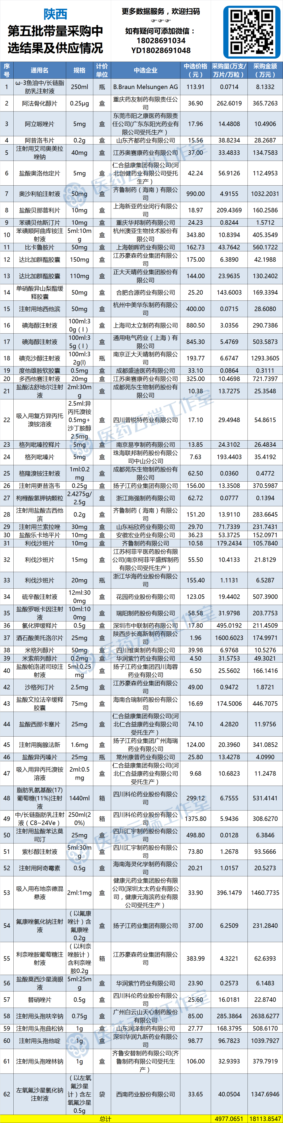 经医药云端工作室测算,陕西省第五批国采中选品种的首年约定采购金额约为1.8亿元(详见下表)。
