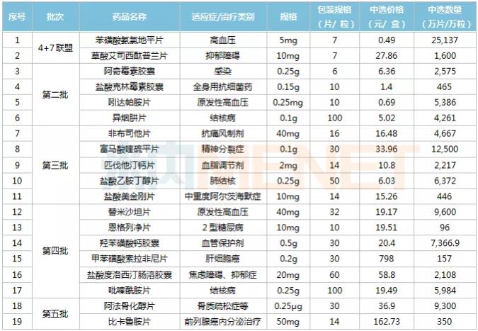 复星医药集采中选产品