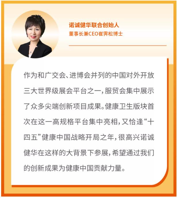 2021中国国际服务贸易交易会(简称服贸会)将于9月2日-7日在北京国家会议中心和首钢园区举办,诺诚健华(香港联交所代码:09969)将亮相首钢园区5号展馆——健康卫生服务专题展(展位号ST5011),呈现最新的创新管线助力健康中国。