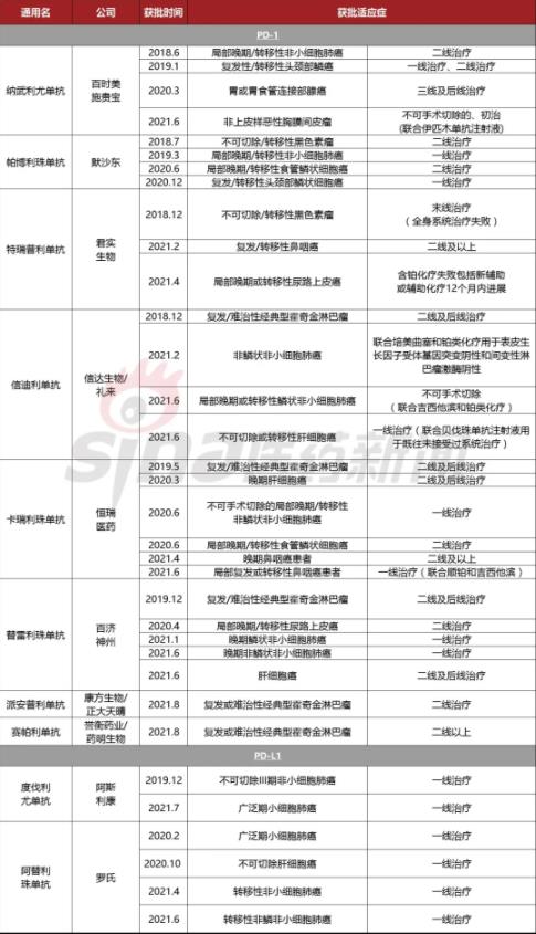 目前国内已上市8款PD-1.其中2款来自进口,其余6款为国内自研,除了新获批的誉衡药业/药明生物产品之外,其他5款分别来自君实生物、信达生物、恒瑞医药、百济神州和康方生物;另外还有两款进口PD-L1.