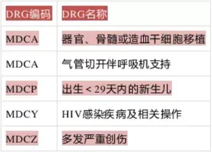 在进行主要诊断大类(MDC)分类之前,首先根据病案首页数据,将器官移植,呼吸机使用超过96小时,年龄小于29天,主要诊断或其他诊断为HIV或者严重创伤者进行先期分组,形成MDCA,MDCP,MDCY及MDCZ。