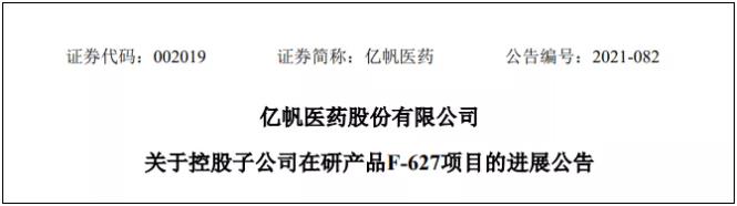 这是 F-627 在全球范围内递交的第 2 项新药上市申请。2021 年 3 月 30 日,F-627 向美国 FDA 提交 BLA 申请,2021 年 5 月 27 日晚收到美国食品药品管理局 (FDA) 的受理函,正式接受 F-627 的上市申请。而在中国,正大天晴于 8 月 30 日以2.1 亿元+分级净销售额提成获得了该药的独家权益,亿帆医药预计于今年年底或明年年初在国内递交上市申请,在 2022 年取得批准。