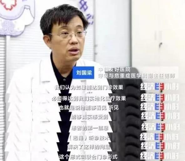 刘国梁,中日友好医院呼吸与危重症医学科副主任医师,正在视频会诊的是北京双井第二社区医院的一位患者。这位患者在社区医院做的检查可以通过系统上传给刘国梁,社区医院还可以利用数字听诊设备,实时将患者的呼吸声音传给刘国梁听。