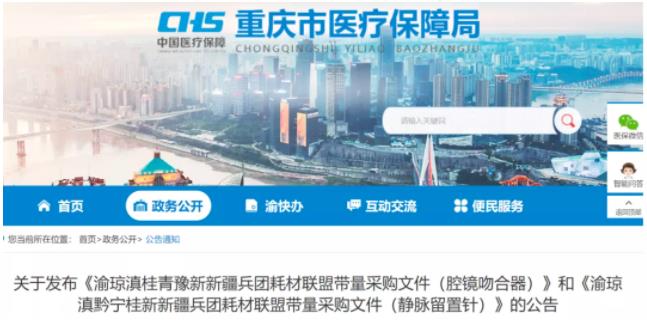 10月22日,重庆市医保局发布《渝琼滇桂青豫新新疆兵团耗材联盟带量采购文件(腔镜吻合器)》,重庆、海南、云南、广西、青海、河南、新疆、新疆生产建设兵团(自治区、直辖市)联盟带量采购正式启动,集采产品为一次性腔镜用直线型切割吻合器及组件(含电动吻合器及组件)。