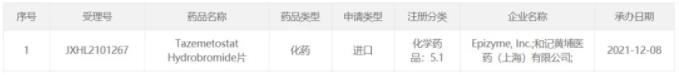 中国国家药监局药品审评中心(CDE)最新公示,和黄医药与Epizyme公司联合提交了一项tazemetostat hydrobromide(下简称“tazemetostat”)片的临床试验申请,并于12月8日获得受理。公开资料显示,tazemetostat是Epizyme公司开发的一款“first-in-class” EZH2甲基转移酶抑制剂,拟开发治疗肿瘤,是首款获得FDA批准的EZH2抑制剂。。今年8月,和黄医药以高达3.1亿美元的合作获得了其在大中华区的开发和商业化权利。