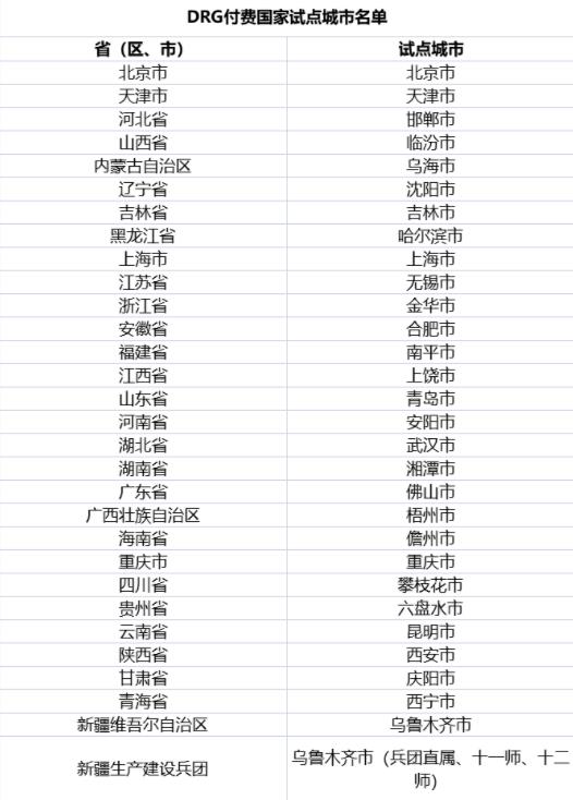 在过往三年,我国试点先行。2019年国家医保局会同财政部、国家卫健委、国家中医药局启动DRG改革,在30个城市开展CHS-DRG试点工作;2020年国家医保局又组织研究形成了DIP病种分值付费的技术规范,并确定71个DIP试点城市。截至2021年年底,CHS-DRG/DIP付费国家试点已全部开展实际付费。