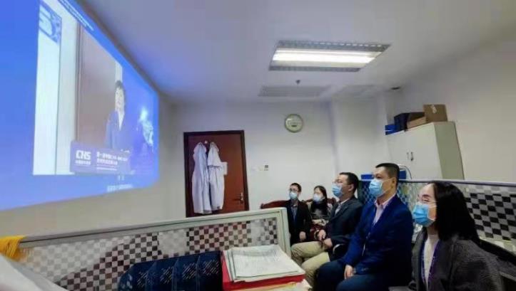 三台县中医院职工在集中观看大会直播(图片来源:受访者提供)