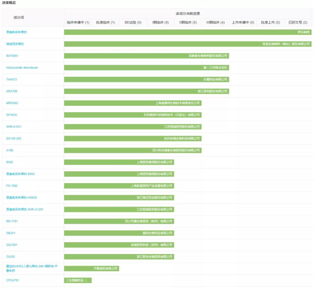 维迪西妥单抗(Disitamab vedotin,RC48)是首款获批上市的国产 ADC 产品。2021 年 6 月 9 日,该药获 NMPA 附条件批准用于至少接受过 2 种系统化疗的 HER2 过表达局部晚期或转移性胃癌及胃食管结合部腺癌(G/GEJ)患者的治疗。在同年的医保谈判中,维迪西妥单抗已经顺利通过谈判进入了医保乙类目录,1 月 1 日新版医保目录落地,维迪西妥单抗已经开出了首张医保处方。