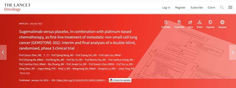 据了解,发表于《柳叶刀-肿瘤学》上的文章分别报告了GEMSTONE-301研究与GEMSTONE-302研究的成果。