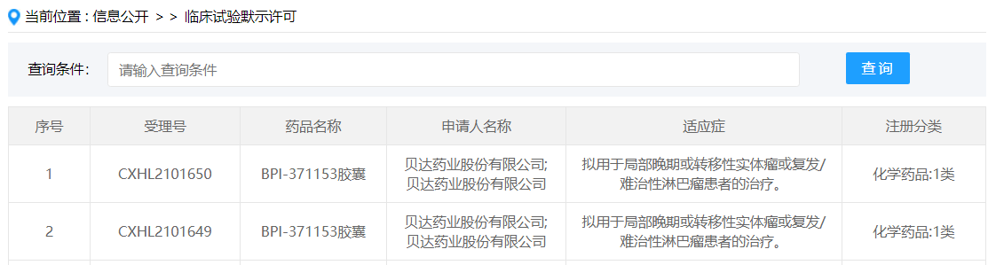 近日,贝达药业BPI-371153胶囊的临床试验申请已获药监局批准,用于治疗局部晚期或转移性实体瘤或复发/难治性淋巴瘤患者。