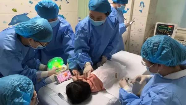 患儿在接受诺西那生钠注射治疗。河南省儿童医院供图