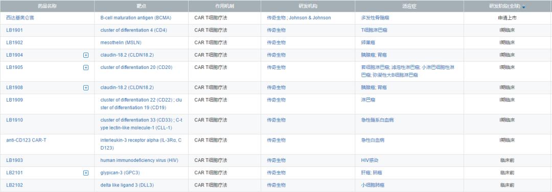 传奇生物在研管线(来源:医药魔方NextPharma)