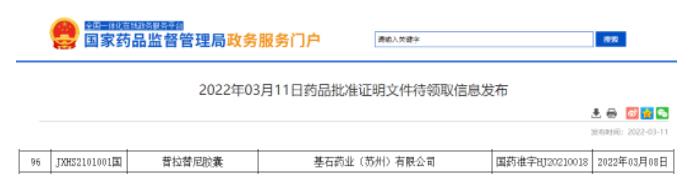 3 月 11 日,据 NMPA 官网显示,基石药业的「普拉替尼胶囊」新适应症获批上市,用于需要系统性治疗的晚期或转移性 RET 突变型甲状腺髓样癌(MTC)成人和 12 岁及以上儿童患者的治疗,以及需要系统性治疗且放射性碘难治(如果放射性碘适用)的晚期或转移性 RET 融合阳性甲状腺癌成人和 12 岁及以上儿童患者的治疗。