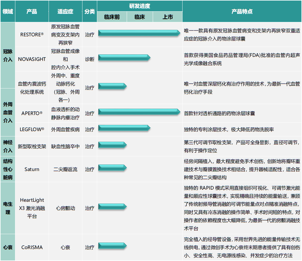 2021年,远大医药在心脑血管高端医疗器械领域先后布局了4款全球创新产品,分别为美国Cardio Focus治疗心房颤动创新医疗器械的新一代HeartLight X3激光消融平台;耶鲁大学孵化企业美国CoRISMA治疗心力衰竭的创新医疗器械CoRISMA系列产品;与美国FastWave合作进行开发用作治疗中、重度动脉钙化的创新医疗器械血管内震波钙化处理系统,以及意大利InnovHeart用于二尖瓣置换的全球创新医疗器械Saturn。