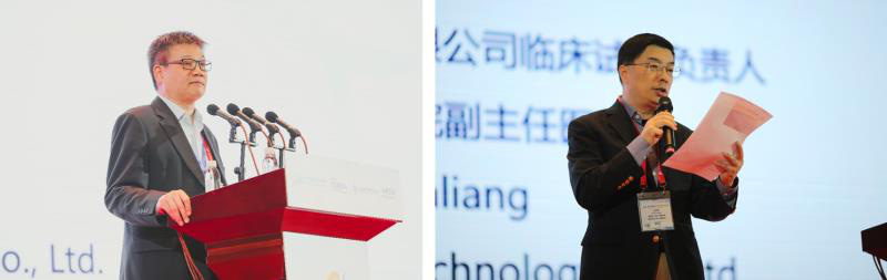 临床数据全球首发专场主持人:华领医药共同创始人、总经理陈力(左);基石药业首席执行官江宁军(右)