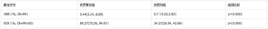 表1治疗后肿瘤最佳疗效评价(FAS)