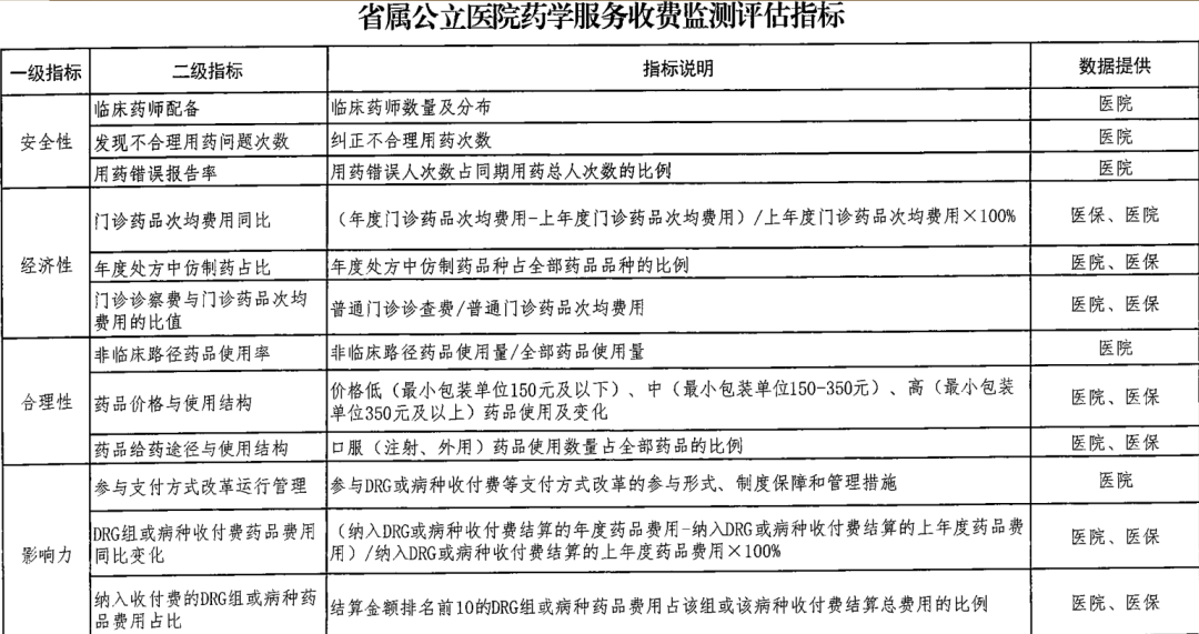 建立药学服务收费监测评估机制,开展对省属公立医院药学服务收费与支付情况跟踪监测,重点对用药安全性、合理性、经济性和影响力等方面开展监测,并择机对药物治疗管理进行分析评估,促进医疗机构合理用药和安全用药,让患者感受到药学服务的价值。药学服务收费监测评估指标详见下列附件。