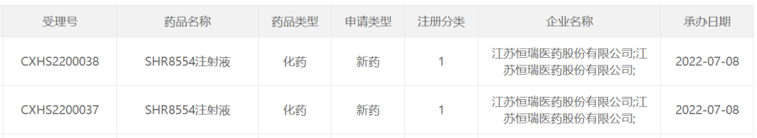 2022年7月8日,恒瑞医药1类镇痛新药SHR8554注射液的上市申请获得NMPA受理。