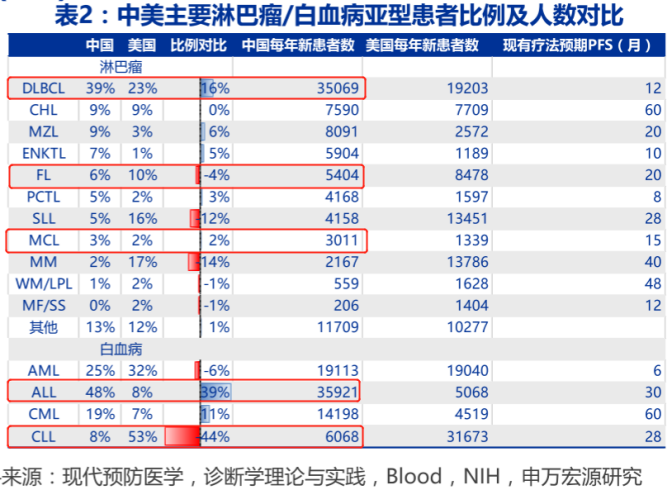 在美国,CLL是白血病中新发患者最多的适应症,SLL则是淋巴瘤中仅次于MM的第二大适应症。(目前泽布替尼在美国只获批了MCL、WM、复发/难治性边缘区淋巴瘤)