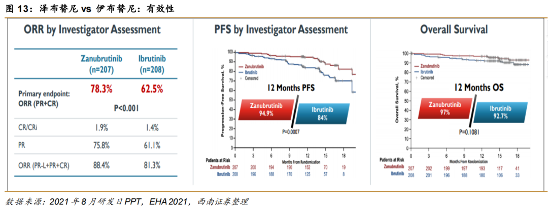 二是头对头临床数据的支持,2022年4月百济神州更新的ALPINE试验最终缓解评估数据,经研究者评估,泽布替尼组对比伊布替尼组ORR 80.4% vs 72.9%(p=0.0264),同时安全性更优。