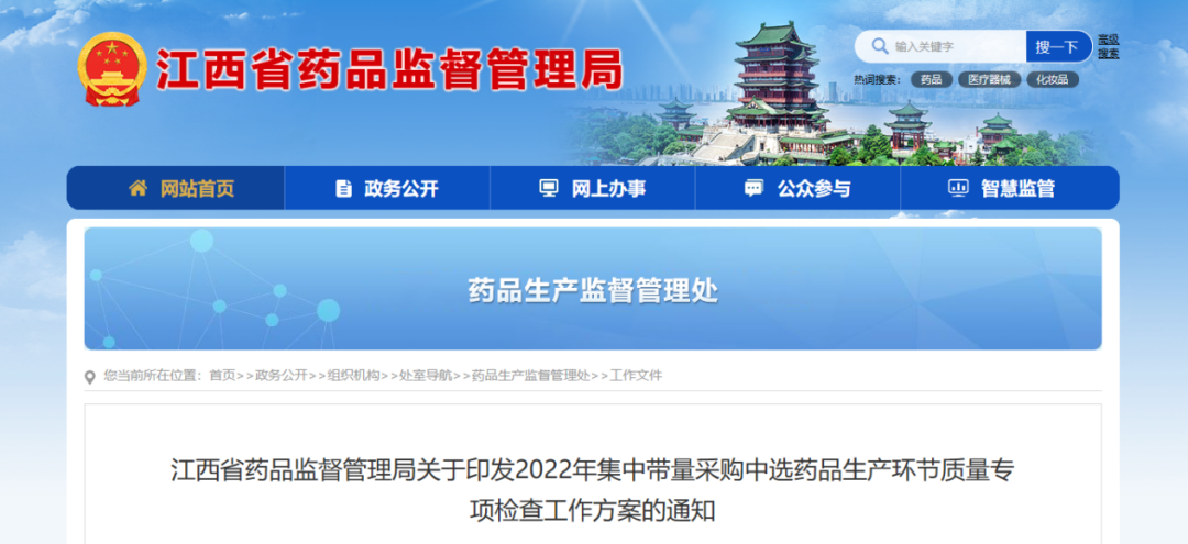 江西、湖北、山东、安徽、宁夏、陕西等全国各省份都在积极推进2022年集中带量采购中选药品生产专项检查工作,陆续下发相关工作方案和通知,以加强质量安全监管,确保公众用药安全,切实保障人民群众用药安全有效。