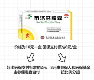 医保支付标准是指基本医疗保险参保人员使用医保项目时,基本医疗保险基金支付费用的基准。在支付标准以内的部分由参保人和医保基金按比例分担,支付标准以外的部分由参保人自付。如下图所示的例子,患者买这盒药时,8元由参保人和医保基金按报销比例分担,而超出医保支付标准的2元医保是不负担的,由患者自付。