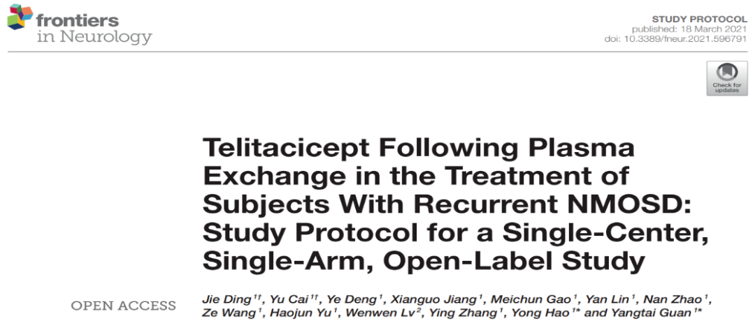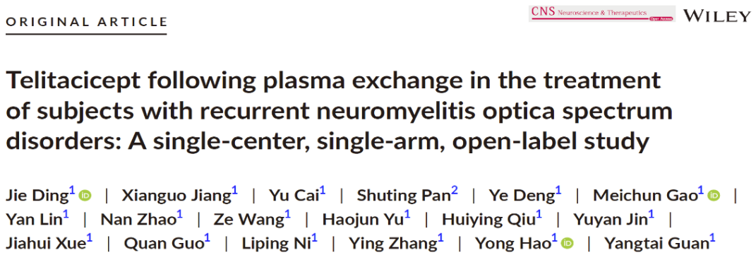 管阳太团队长期致力于NMOSD等神经免疫性疾病的基础和临床研究。自2017年以来,该团队采用改良的血浆置换、双重血液滤过,在国际上首次探索性开展血浆置换联合靶向药物泰它西普治疗复发性NMOSD的临床研究。