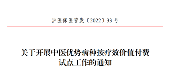 医改界注意到,8月19日,上海市医保局、卫生健康委等4部门联合印发《关于开展中医优势病种按疗效价值付费试点工作的通知》(以下简称“通知”),率先在全国提出按疗效价值付费的模式,确定肛痈、腰痹等22个病种开展按疗效价值付费,22家中医、中西医结合医院为首批试点单位。目前试点工作为模拟运行阶段,2022年9月1日起正式实施。