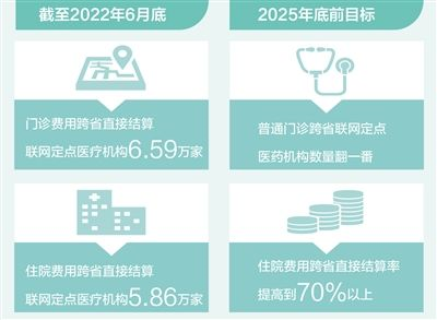 《通知》明确提出,2025年底前,住院费用跨省直接结算率提高到70%以上,普通门诊跨省联网定点医药机构数量实现翻一番,群众需求大、各地普遍开展的门诊慢特病相关治疗费用逐步纳入跨省直接结算范围,异地就医备案规范便捷,基本实现医保报销线上线下都能跨省通办。