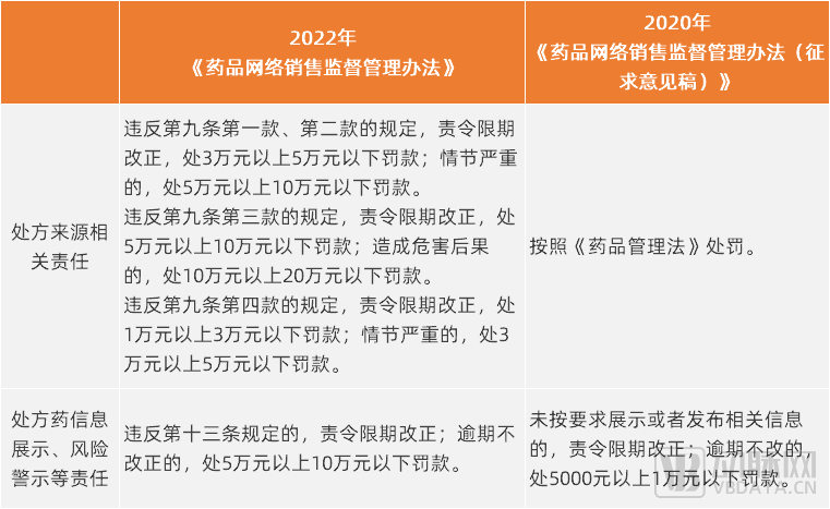 不只是针对处方药销售,整体看《办法》的处罚措施,都要比征求意见稿更严。《办法》的罚款金额在1万元至20万元之间,而征求意见稿在数千元至3万元之间。也就是说,医药电商一旦踩中监管红线,将面临更高的违规成本。
