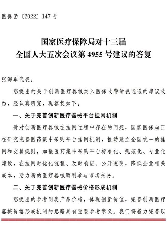 医保局近日对外发布《国家医疗保障局对十三届全国人大五次会议第4955号建议的答复》。