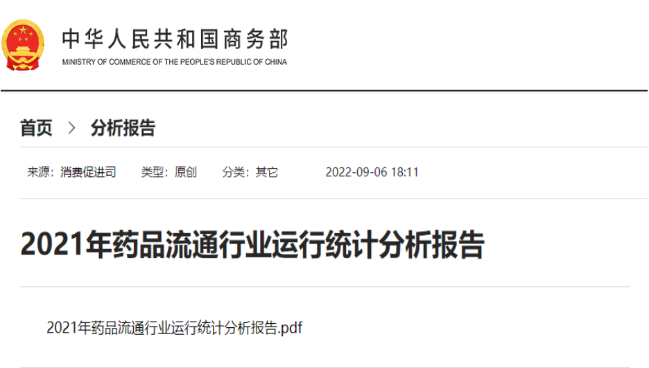 9月6日,国家商务部在其官方网站上发布了《2021年药品流通行业运行统计分析报告》。