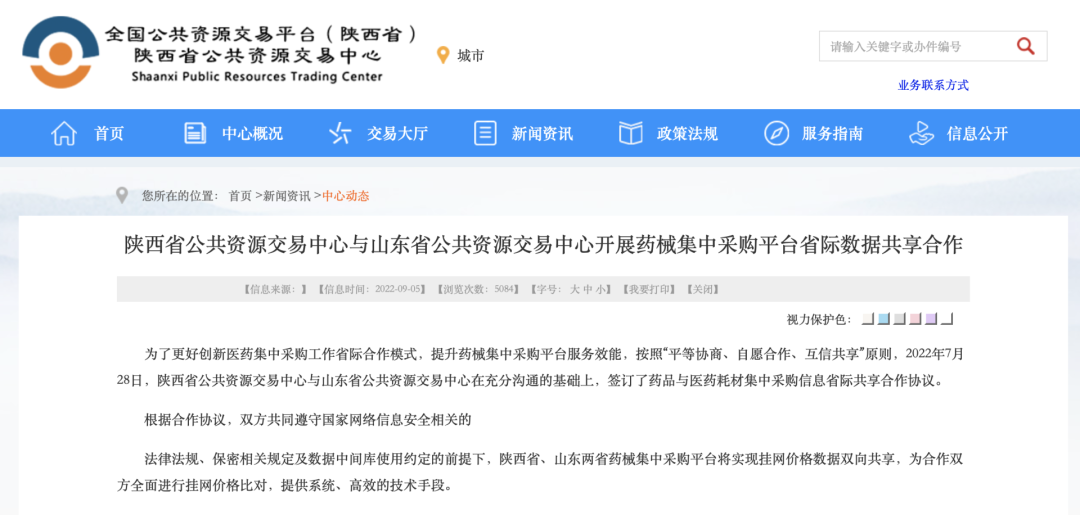 陕西与山东,两省公共资源交易中心共同签订了“药品与医药耗材集中采购信息省际共享合作协议”。