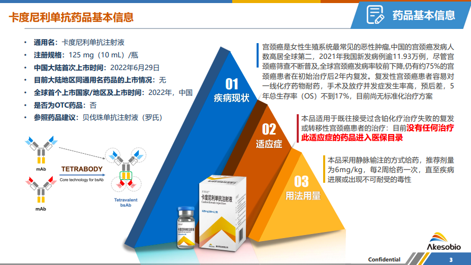 康方生物的卡度尼利单抗是全球第一个获批的肿瘤双免疫抑制点双抗,也是中国第一个获批的双免疫抑制点双抗,获批适应症是复发/转移性宫颈癌。