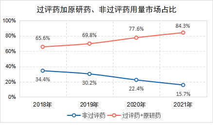 图1 集采品种过评药加原研药、非过评药用量占比趋势